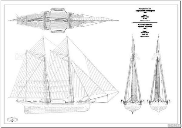 Russian Imperial yacht "Queen Victoria" 1845 Drawings set in scale 1/32 and illustrations |