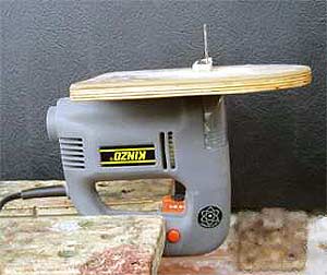 изготовлен из 10мм фанеры, область вокруг пилки и в месте крепления к лобзику
