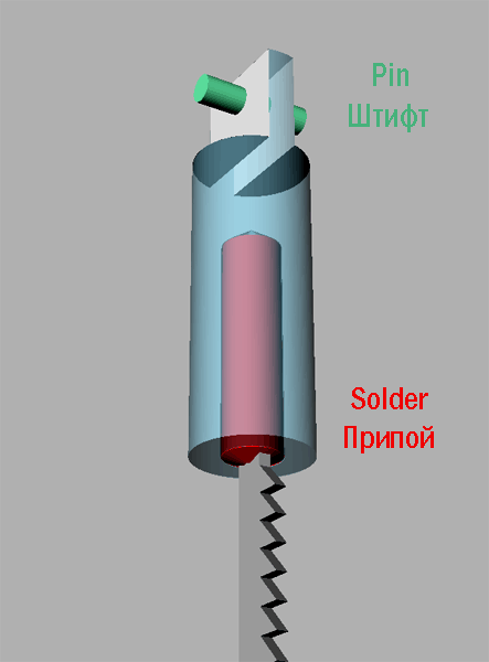 Держатели пилочек для настольного лобзика Большинство настольных электролобзиков рассчитаны на использование пилок , имеющих на конце поперечный штифт. Некоторые лобзики , в том числе и мой Einhell имеют в комплекте специальные зажимы , позволяющие зажимать пилки для ручных лобзиков. Когда один из таких зажимов сломался , пришлось изготовить альтернативный зажим , конструкция которого показана на рисунке. Зажим выточен из стали на токарном станке , в него запрессован штифт 1.8 мм из сломанного сверла. Пилка впаивается в зажим мягким припоем ( типа ПОС-40).