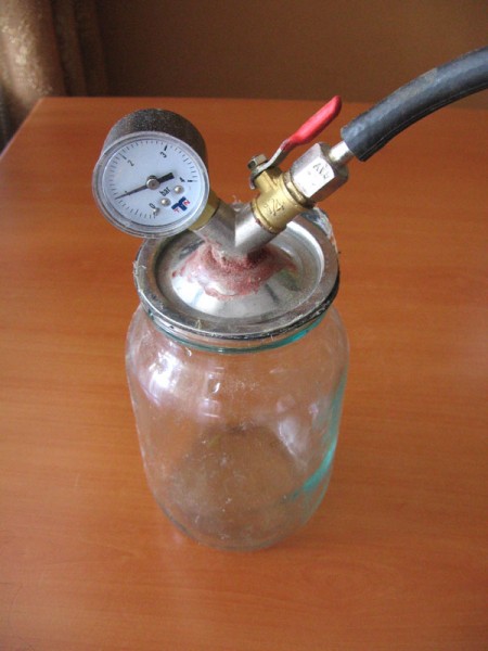Vacuum painting Vacuum can paint a wood deep but veneer stained almost through. I use a compressor from the refrigerator as vacuum pump. Vacuum chamber is shown in the photo. I cut veneer strips and fit into the jar rings, then I pour the paint and pump out the air. Staining occurs in a few hours. Of course, the cooling unit does not give a high vacuum but the veneer is enough.I showed the strips of veneer with color and without color on the second photo.