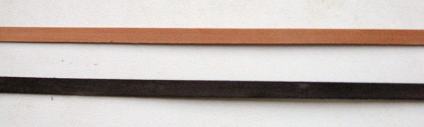 Вакуумная окраска Вакуумная окраска позволяет глубоко окрасить дерево , шпон практически насквозь. Как вакуум-насос я использую компрессор от холодильника , вакуум-камера показана на фото. Нарезанный на полоски шпон кольцами укладывается в банку , заливается водная морилка и откачивается воздух.Прокрашивание происходит за несколько часов.Конечно , холодильный агрегат глубоко вакуума не даст , но для шпона достаточно. На втором фото полоски шпона с окраской и без. |